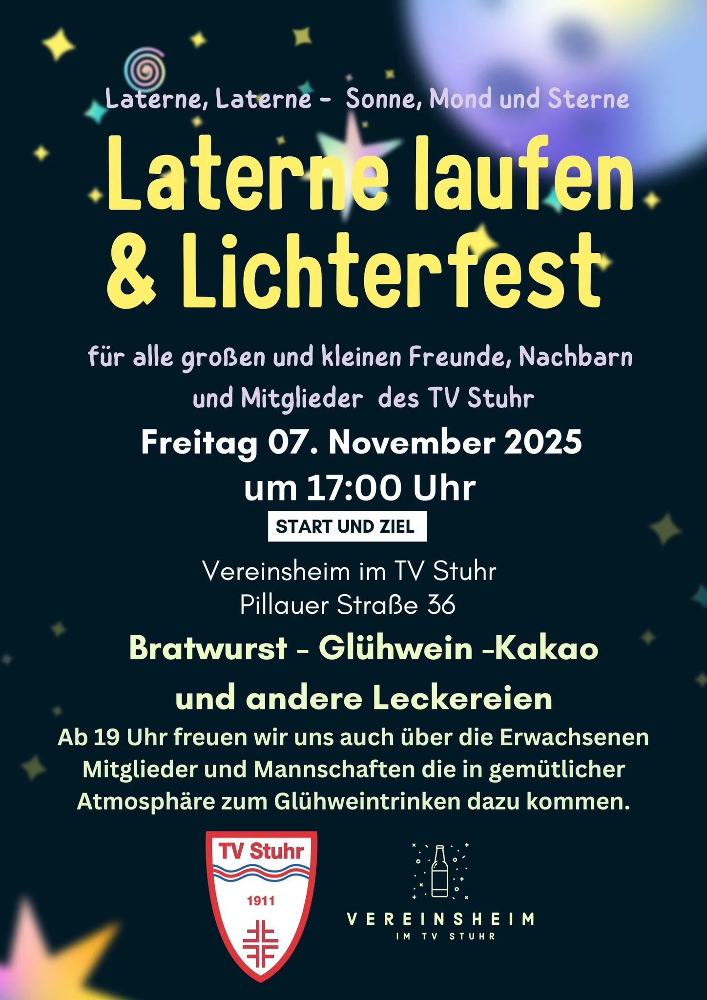 Am Freitag, den 7. November 2025, lädt der TV Stuhr alle großen und kleinen Freunde, Nachbarn und Mitglieder herzlich zum traditionellen Laterne laufen & Lichterfest ein.